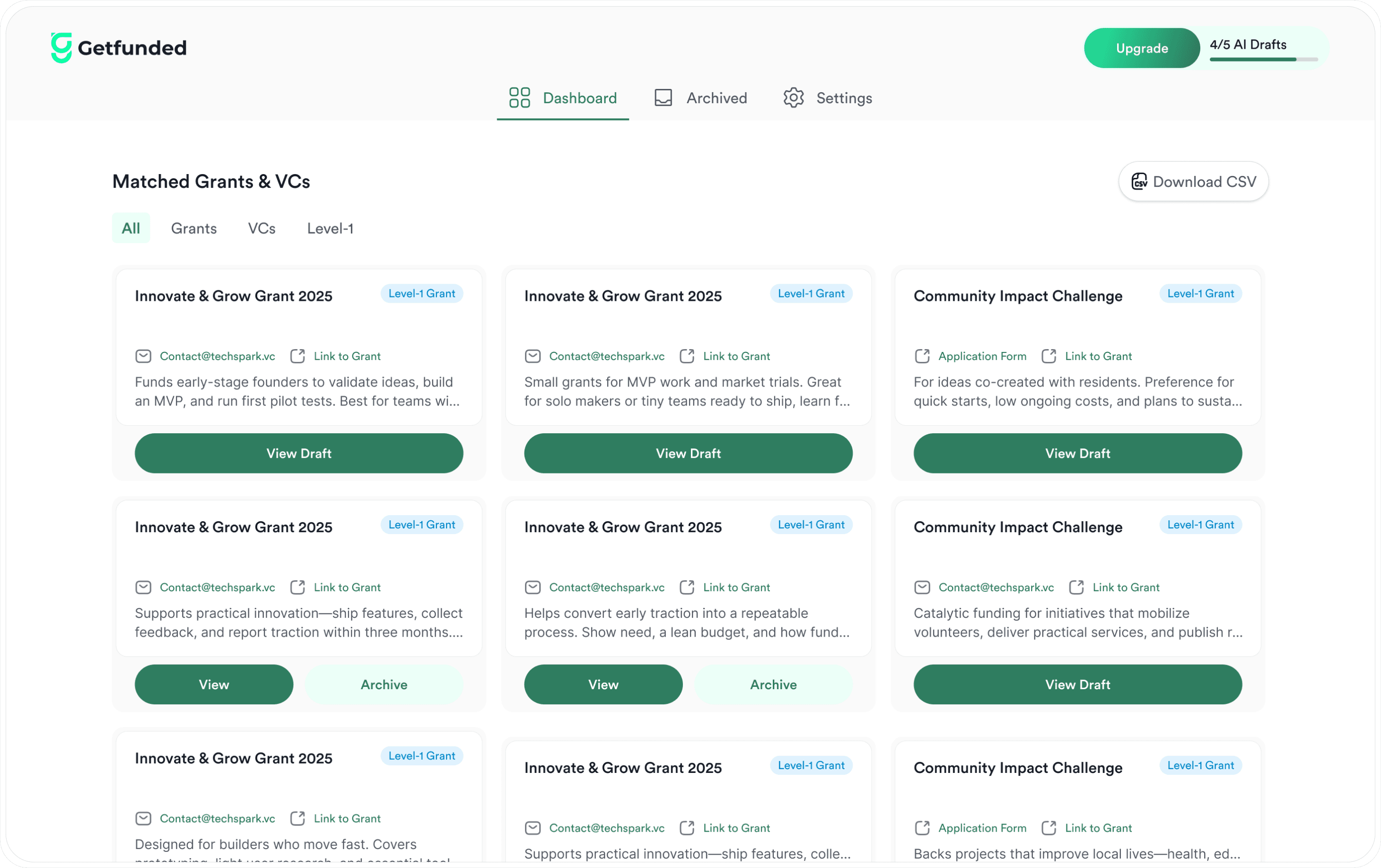 Getfundme matches you with active grants and funding programs—then helps you answer application questions in clear, winning language.