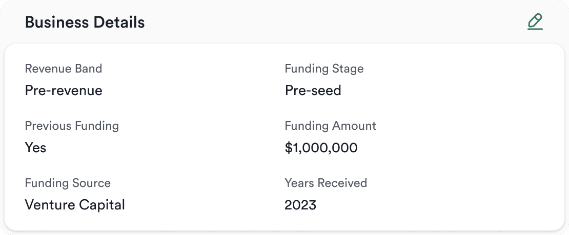 Paste any application question. Get a tailored draft that uses your pitch deck, company name, and business details—ready to refine and submit.